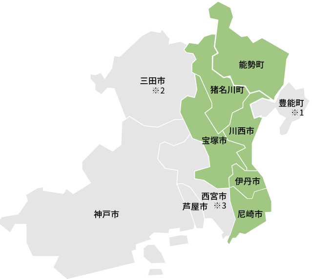 ※3 西宮市は西宮北部と南部は対応エリアです。